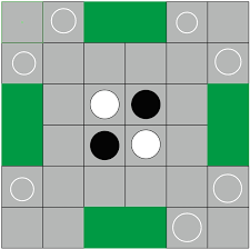 玩家轮流落子,每次只能在棋盘上有空格的地方放置一枚棋子。当棋子放置后,如果该棋子与同色棋子在横、竖或斜方向上形成一个连续的“夹心饼干”(即两端为己方棋子,中间夹着对方棋子),那么这些被夹在中间的对方棋子就会被翻转成己方棋子。例如,黑棋在某一位置落子后,使得一排或一列或斜线上黑棋夹住了白棋,那么这些白棋就会变成黑棋。