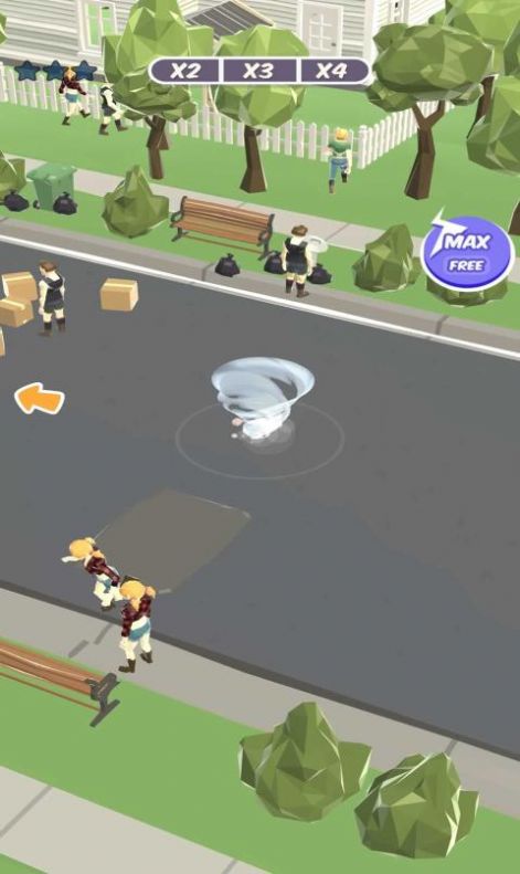 2. 加速操作:点击屏幕特定区域可使龙卷风加速,更快地冲向目标进行破坏。
