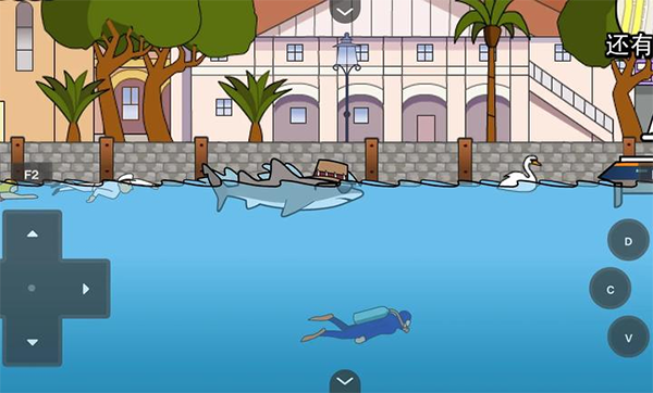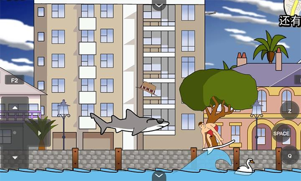 1. 基础操作:方向键控制鲨鱼水平移动,长按↓键潜入深海后快速上浮可实现高空跳跃,咬住飞机时连续点击↓键将其拖入水中引发爆炸。