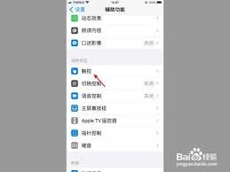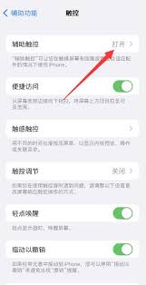 进入触控设置后,我们可以看到“辅助触控”选项。点击该选项,并将开关按钮滑动到右侧,即可开启辅助触控功能。此时,屏幕上会出现一个圆浮标。