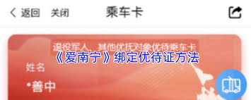 在南宁,持有优待证的朋友们可以通过“爱南宁”app享受诸多便捷服务。那么,如何在“爱南宁”上绑定优待证呢?下面就为您详细介绍。