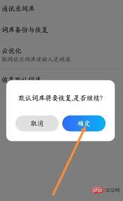 2. 系统会弹出一个确认框,询问你是否确定要恢复默认词库。