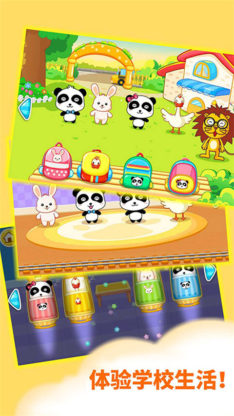 3. 场景选择:主界面呈现“校车接送”动画入口,点击后进入虚拟校园,可通过底部导航栏快速切换“教室”“操场”“食堂”等场景。