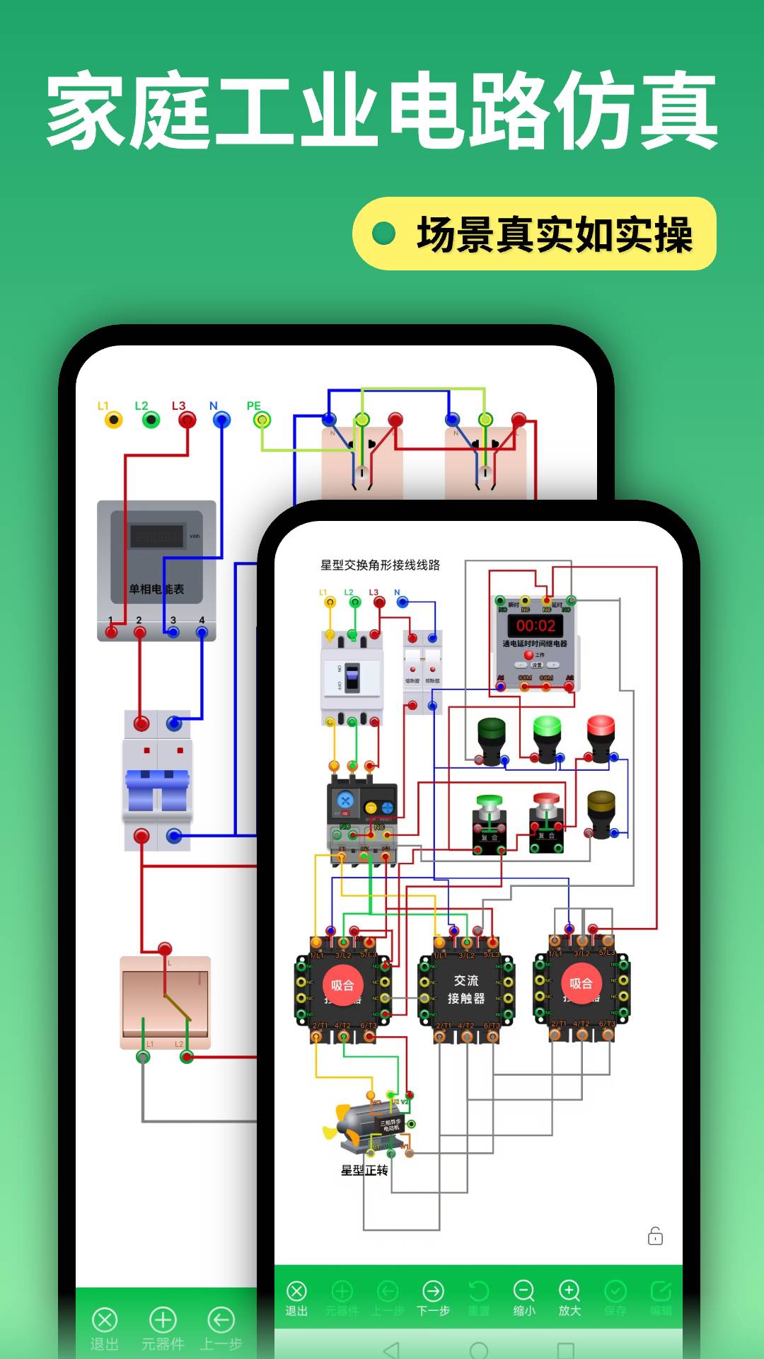 1. 双场景仿真:同时支持家庭电路与工业电路模拟,覆盖照明系统、电机控制、PLC编程等真实应用场景,用户可自由切换低压/高压环境进行训练。